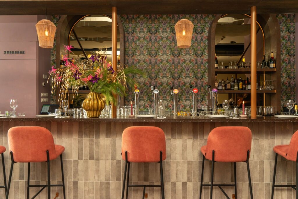Vergeet saai beige. Team Alba brengt kleur op én naast je bord. De zaak is ruim én ook knus, het eten YUM (denk Mediterrane keuken en sharing is caring), en deze smaakvolle plek brengt iedereen in een good mood. Bij binnenkomst loop je direct tegen de prachtige bar aan en kun je de keukenbrigade in actie zien dankzij de enorme open keuken. Alle ruimtes zijn aangekleed met toffe printjes en (jungle) behangetjes en afgetopt met kleurrijke bloemen.